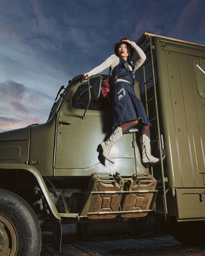 KOLEKCI VYTVÁŘÍ PŘÍRODA KULISY A TAK JE PŘIROZENÉ, ŽE SE SNAŽÍM BÝT K NI CO NEJŠETRNĚJŠÍ. POUŽILA JSEM ČESKÝ DEADSTOCKOVÝ DENIM A RECYKLOVANOU KŮŽI OD FIRMY BELLEDER.
